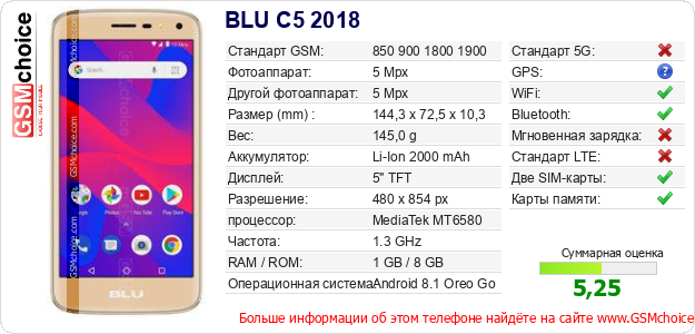 Данные о телефоне BLU C5 2018 на Вашем сайте