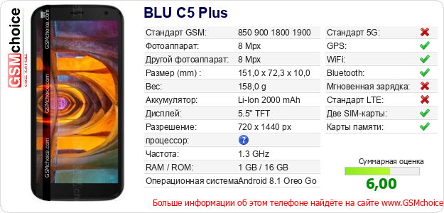 Данные о телефоне BLU C5 Plus на Вашем сайте