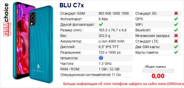 Данные о телефоне BLU C7x на Вашем сайте