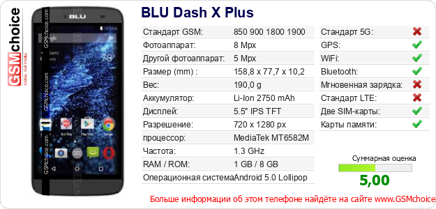 Данные о телефоне BLU Dash X Plus на Вашем сайте