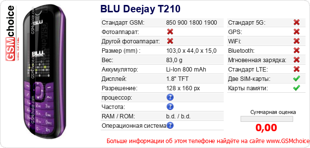 Данные о телефоне BLU Deejay T210 на Вашем сайте