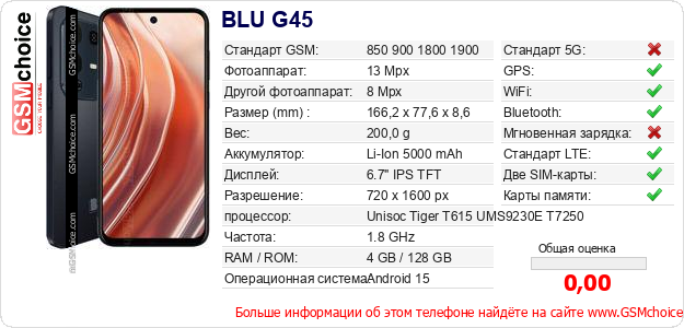 Данные о телефоне BLU G45 на Вашем сайте