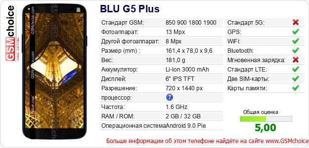 Данные о телефоне BLU G5 Plus на Вашем сайте