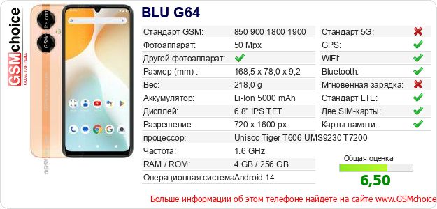 Данные о телефоне BLU G64 на Вашем сайте
