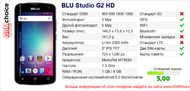 Данные о телефоне BLU Studio G2 HD на Вашем сайте