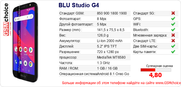 Данные о телефоне BLU Studio G4 на Вашем сайте