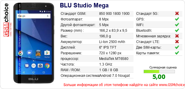 Данные о телефоне BLU Studio Mega на Вашем сайте