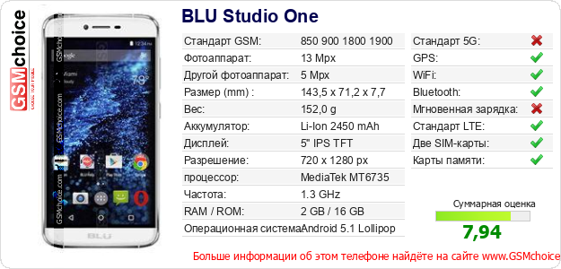 Данные о телефоне BLU Studio One на Вашем сайте