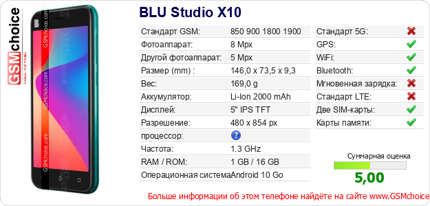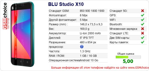 Данные о телефоне BLU Studio X10 на Вашем сайте