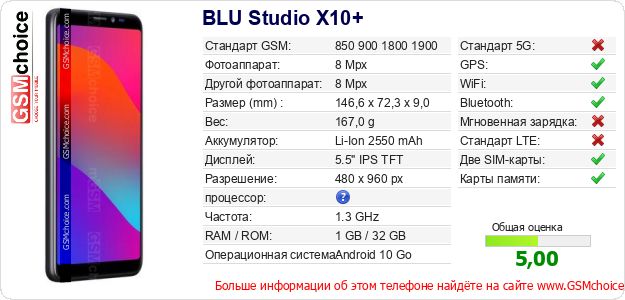 Данные о телефоне BLU Studio X10+ на Вашем сайте