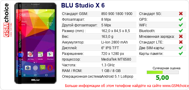 Данные о телефоне BLU Studio X 6 на Вашем сайте