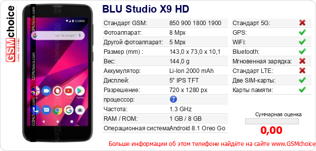 Данные о телефоне BLU Studio X9 HD на Вашем сайте