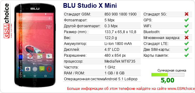 Данные о телефоне BLU Studio X Mini на Вашем сайте