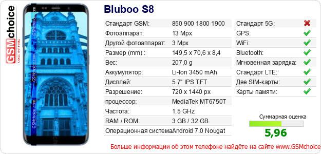 Данные о телефоне Bluboo S8 на Вашем сайте