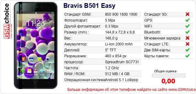 Данные о телефоне Bravis B501 Easy на Вашем сайте