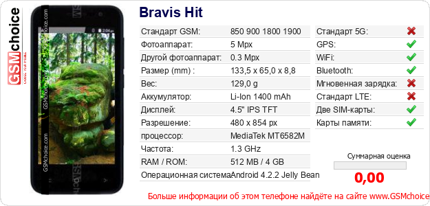 У Тебя есть свой сайт? Хочешь где-то разместить информацию о базовых данных мобильника Bravis Hit ? Это запросто устроить. Достаточно скачать картинку или скопировать и разместить на соответствующем сайте нижерасположенный код:Размещение этого кода вызовет появление нижерасположенной картинки: