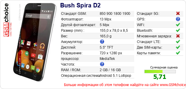 Данные о телефоне Bush Spira D2 на Вашем сайте