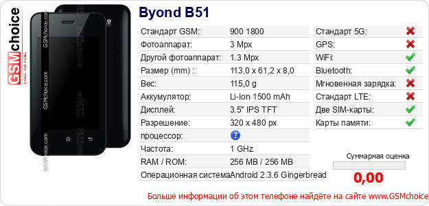 У Тебя есть свой сайт? Хочешь где-то разместить информацию о базовых данных мобильника Byond B51 ? Это запросто устроить. Достаточно скачать картинку или скопировать и разместить на соответствующем сайте нижерасположенный код:Размещение этого кода вызовет появление нижерасположенной картинки: