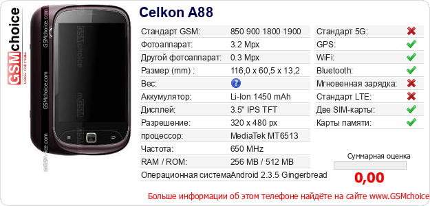 У Тебя есть свой сайт? Хочешь где-то разместить информацию о базовых данных мобильника Celkon A88 ? Это запросто устроить. Достаточно скачать картинку или скопировать и разместить на соответствующем сайте нижерасположенный код:Размещение этого кода вызовет появление нижерасположенной картинки: