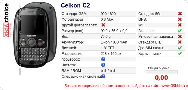 У Тебя есть свой сайт? Хочешь где-то разместить информацию о базовых данных мобильника Celkon C2 ? Это запросто устроить. Достаточно скачать картинку или скопировать и разместить на соответствующем сайте нижерасположенный код:Размещение этого кода вызовет появление нижерасположенной картинки: