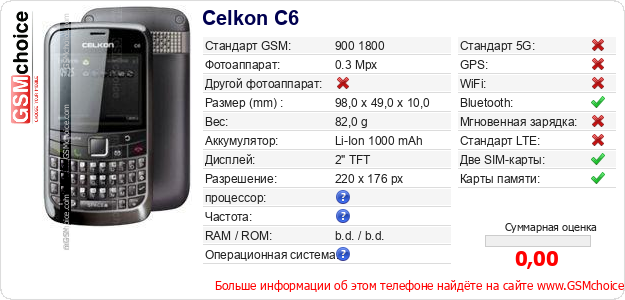 У Тебя есть свой сайт? Хочешь где-то разместить информацию о базовых данных мобильника Celkon C6 ? Это запросто устроить. Достаточно скачать картинку или скопировать и разместить на соответствующем сайте нижерасположенный код:Размещение этого кода вызовет появление нижерасположенной картинки: