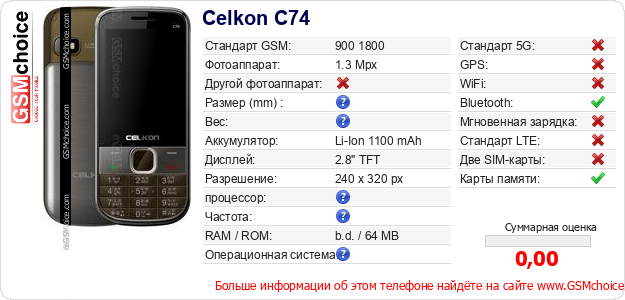 Данные о телефоне Celkon C74 на Вашем сайте