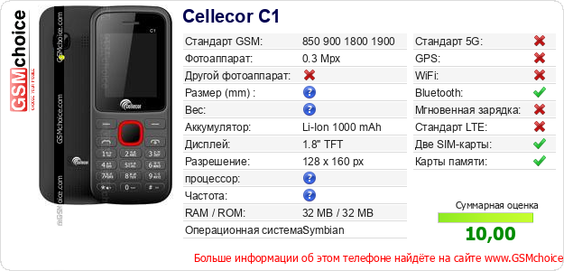 Данные о телефоне Cellecor C1 на Вашем сайте