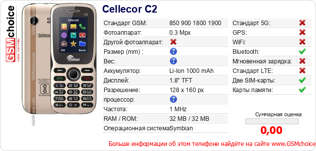 Данные о телефоне Cellecor C2 на Вашем сайте