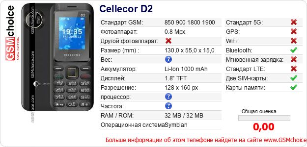 Данные о телефоне Cellecor D2 на Вашем сайте