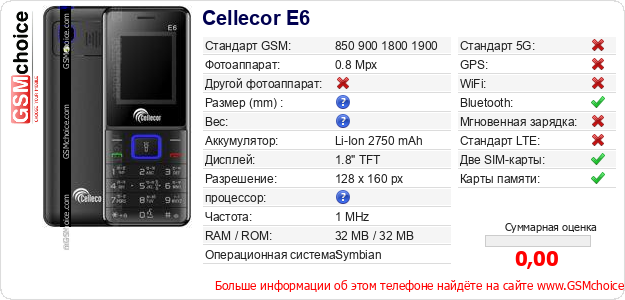 Данные о телефоне Cellecor E6 на Вашем сайте