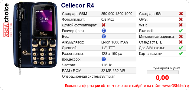 Данные о телефоне Cellecor R4 на Вашем сайте