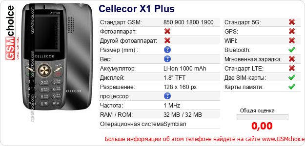 Данные о телефоне Cellecor X1 Plus на Вашем сайте