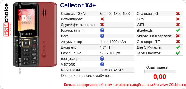 Данные о телефоне Cellecor X4+ на Вашем сайте