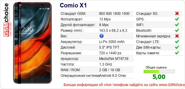 Данные о телефоне Comio X1 на Вашем сайте