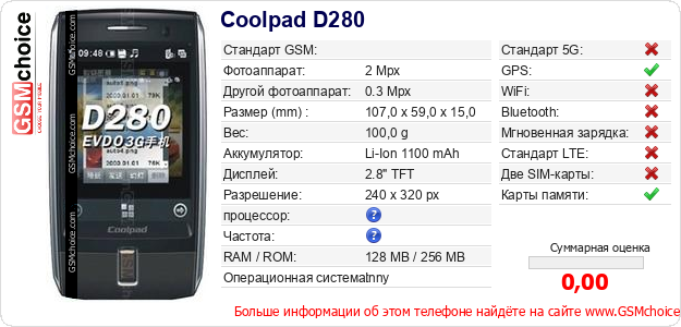 Данные о телефоне Coolpad D280 на Вашем сайте