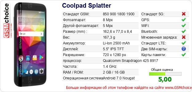 Данные о телефоне Coolpad Splatter на Вашем сайте