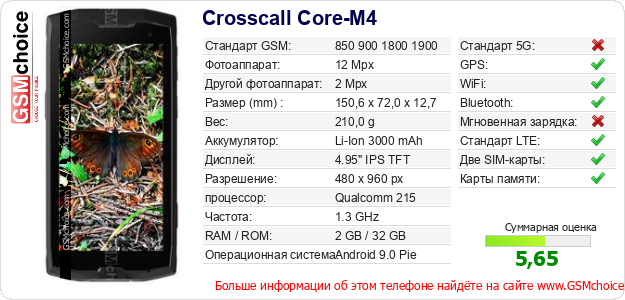 Данные о телефоне Crosscall Core-M4 на Вашем сайте
