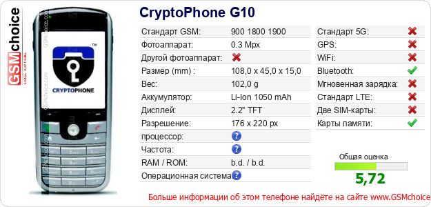 Данные о телефоне CryptoPhone G10 на Вашем сайте
