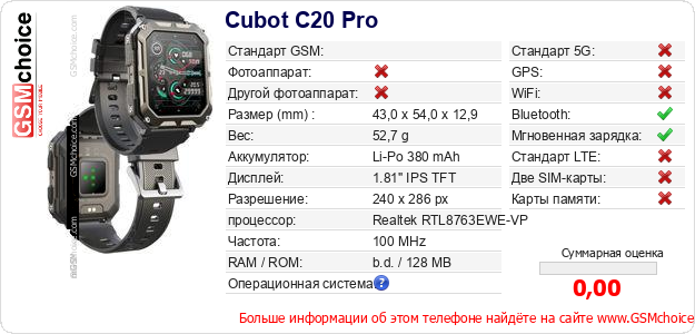 Данные о телефоне Cubot C20 Pro на Вашем сайте