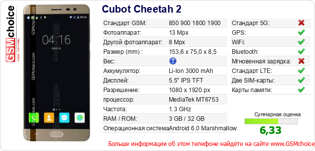 Данные о телефоне Cubot Cheetah 2 на Вашем сайте