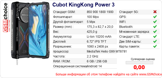 Данные о телефоне Cubot KingKong Power 3 на Вашем сайте