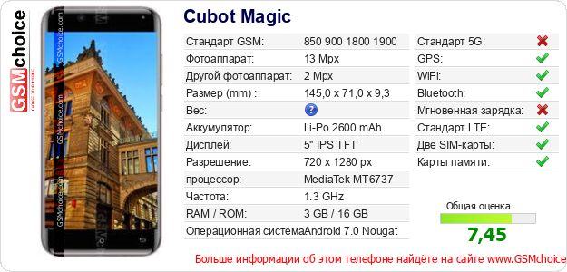 Данные о телефоне Cubot Magic на Вашем сайте