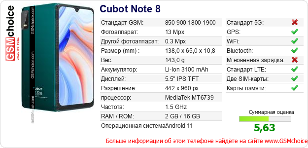 Данные о телефоне Cubot Note 8 на Вашем сайте