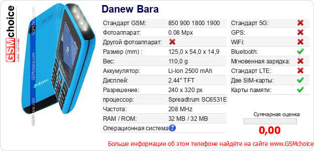 Данные о телефоне Danew Bara на Вашем сайте