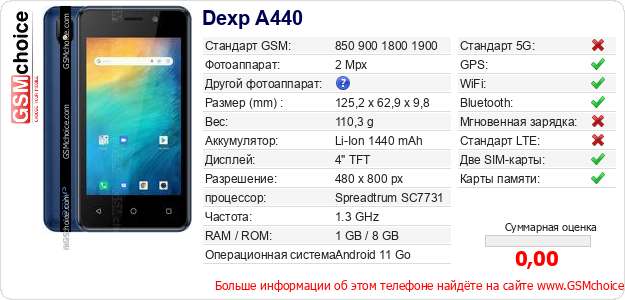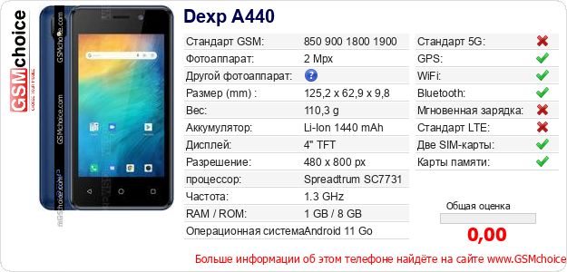 Данные о телефоне Dexp A440 на Вашем сайте