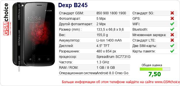 У Тебя есть свой сайт? Хочешь где-то разместить информацию о базовых данных мобильника Dexp B245 ? Это запросто устроить. Достаточно скачать картинку или скопировать и разместить на соответствующем сайте нижерасположенный код:Размещение этого кода вызовет появление нижерасположенной картинки: