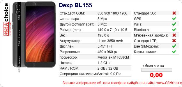 Данные о телефоне Dexp BL155 на Вашем сайте