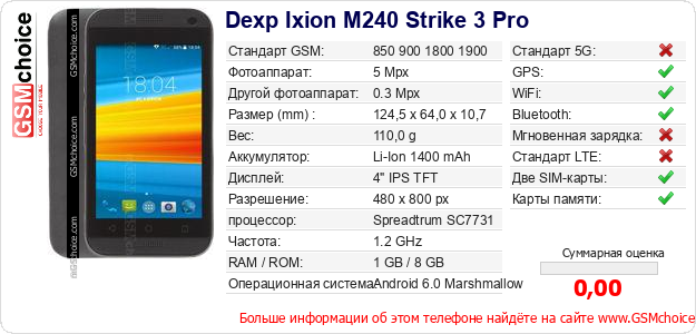 Данные о телефоне Dexp Ixion M240 Strike 3 Pro на Вашем сайте