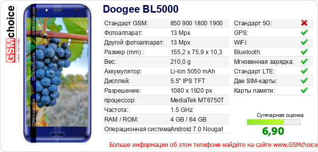 Данные о телефоне Doogee BL5000 на Вашем сайте