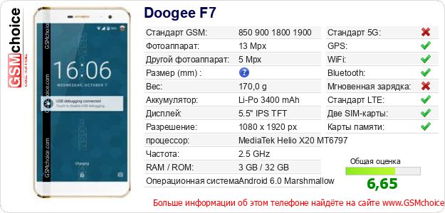 Данные о телефоне Doogee F7 на Вашем сайте